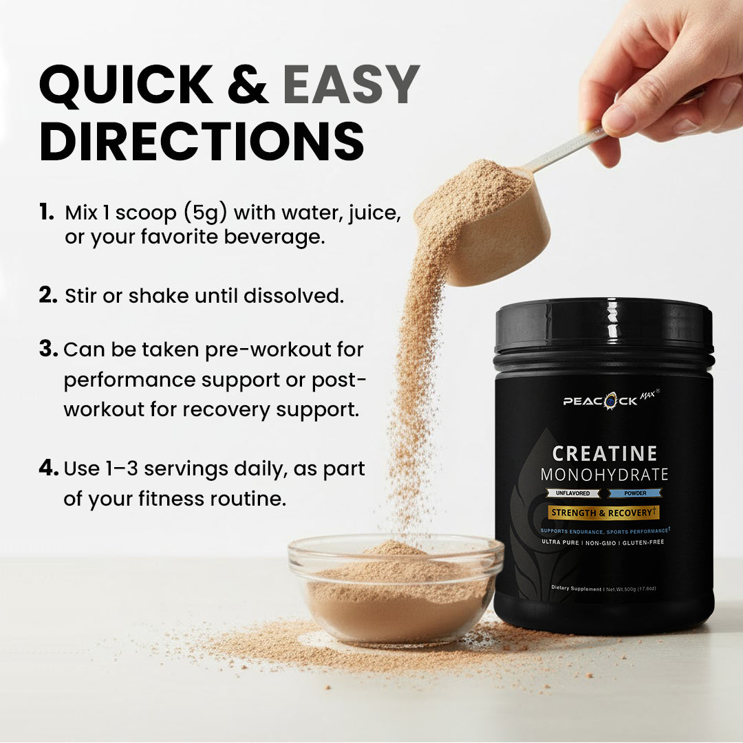Our creatine monohydrate powder formula blends smoothly into protein shakes, smoothies, coffee, or plain water without changing taste or texture. Unlike flavored options, this formula gives you total flexibility, which is perfect for customizing your favorite drinks and recipes while increasing your nutritional intake.